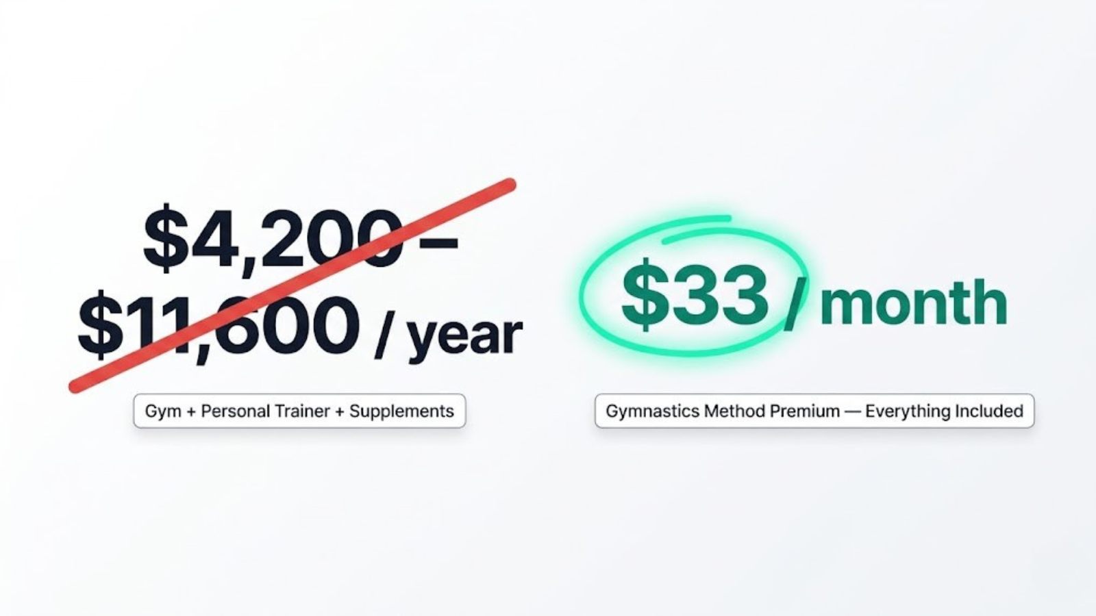 Up to $11,520/yrAt $80/session, three times a week, that's $960/month. Over a year: $11,520. For the price of one month of personal training, you get a full year of the Gymnastics Method.